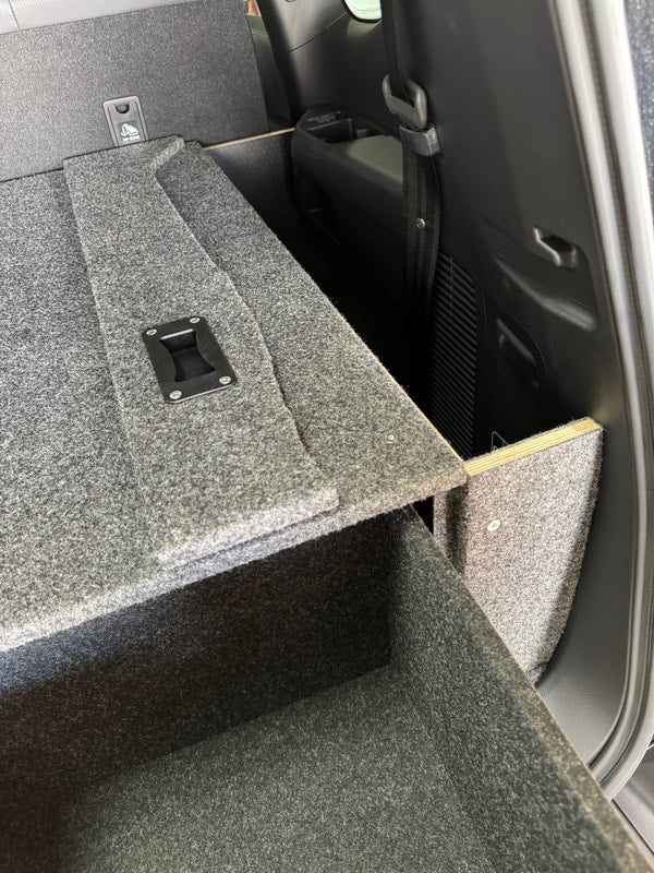 • Add a second drawer to the top of the existing cargo drawer at an additional cost. Dimensions of the top drawer will differ from the standard drawer due to the profile of the interior cargo space and recline of the rear seats.